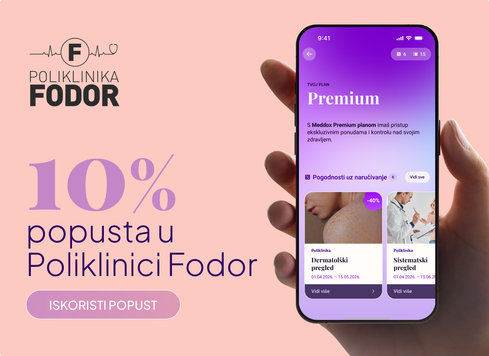 Poliklinika Fodor je i jedna od Meddoxovih partnerskih klinika koja premium pretplatnicima aplikacije nudi dodatne posebne pogodnosti:10% popusta na sve ultrazvuke i color dopplere, usluge iz područja nefrologije, interne medicine te usluge ambulante za hipertenziju.