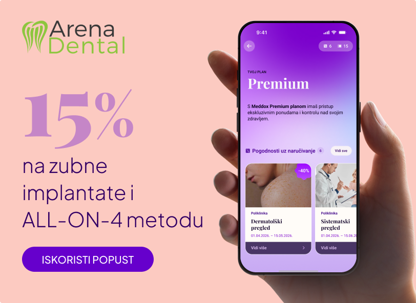 Arena Dental je i jedna od Meddoxovih partnerskih klinika koja premium pretplatnicima aplikacije nudi ekskluzivne popuste i druge posebne pogodnosti.